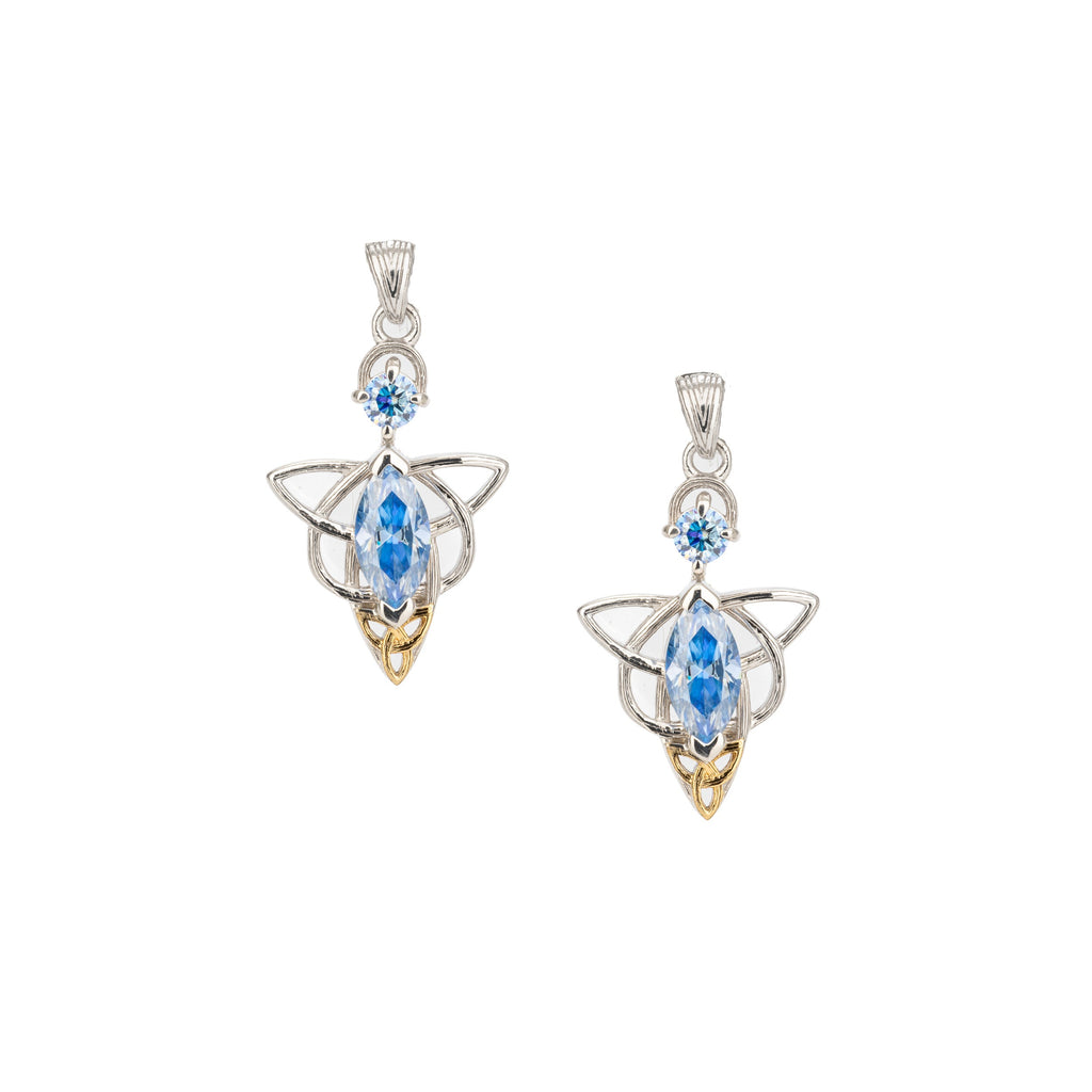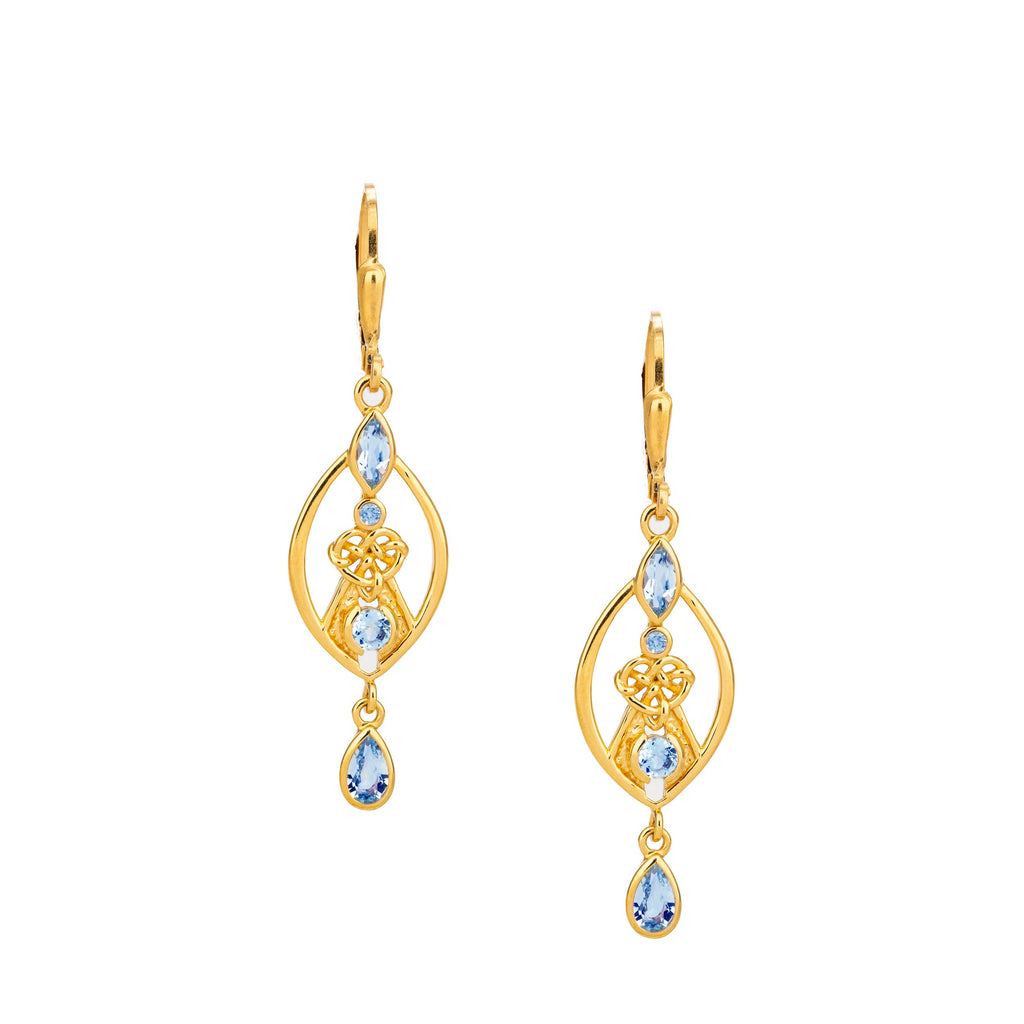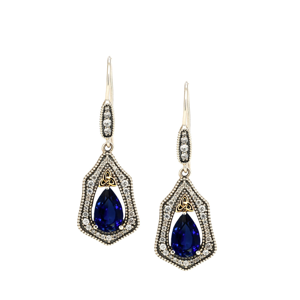Silver with 24k Vermeil with Lab Grown Blue Sapphire or Ruby and White Moissanite Leverback Earrings