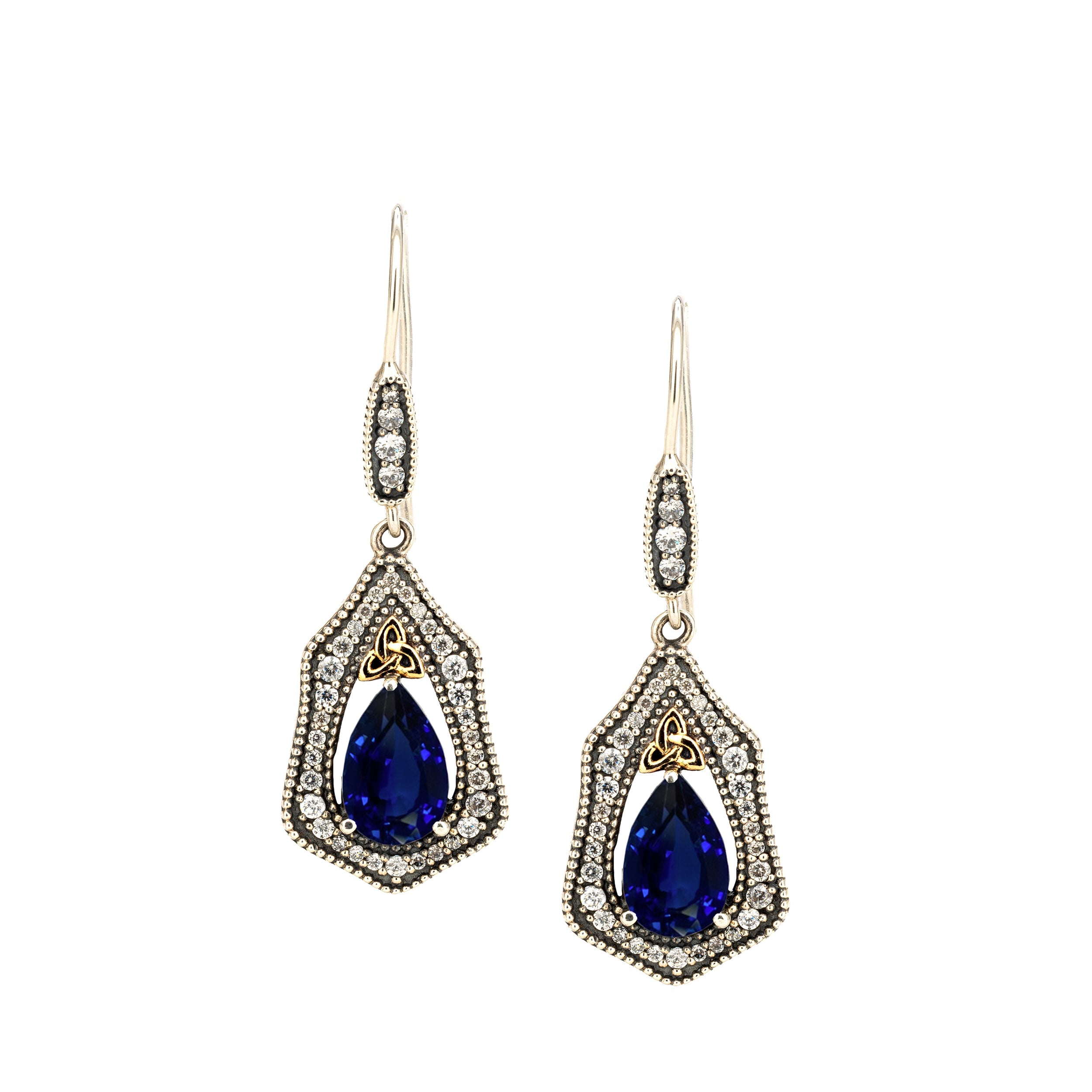 Materials: Sterling Silver with 24k Vermeil (3 micron), Lab Grown Blue Sapphire or White Moissanite (Pear cut 6mm x 9mm and White Moissanites (1.8mm, 1.3mm and 1mm)