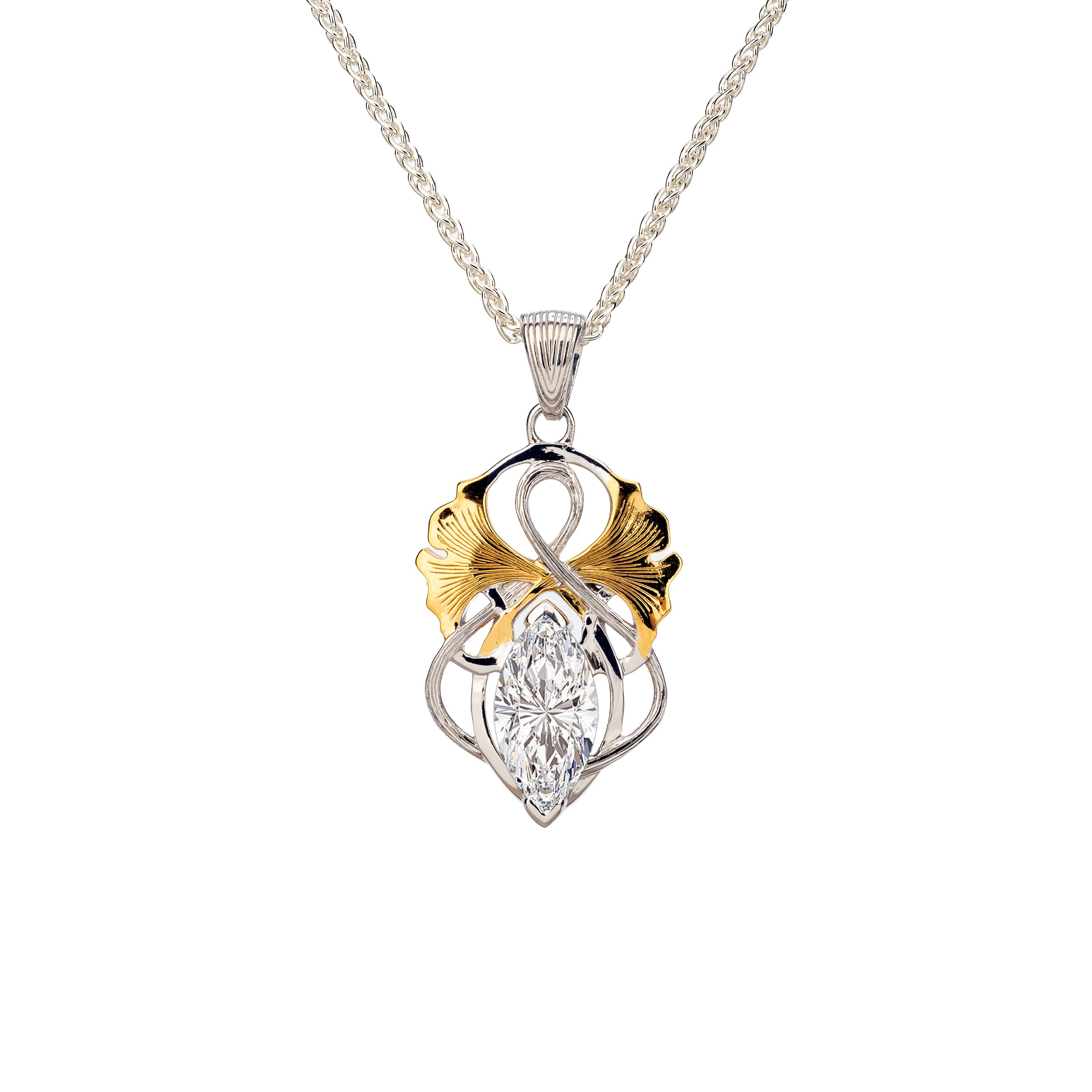 Materials: Sterling Silver and18k Vermeil (2.5micron) with White Moissanite (Marquise Cut 12mm x 6mm)