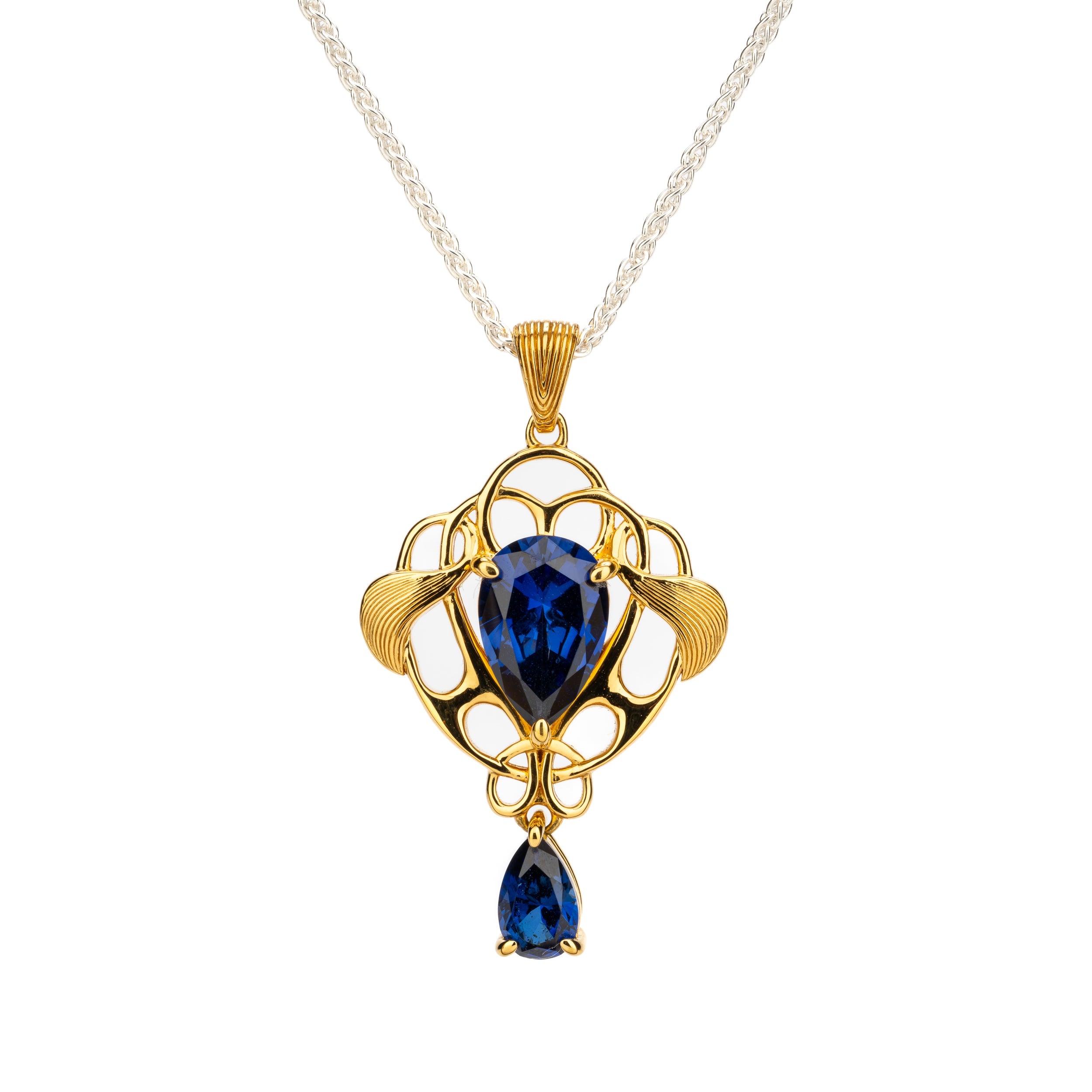 Materials: 18k Vermeil (2.5micron) on Sterling Silver with Lab Grown Blue Sapphire (Pear Cut 12mm x 8mm, 8mm x 5mm)