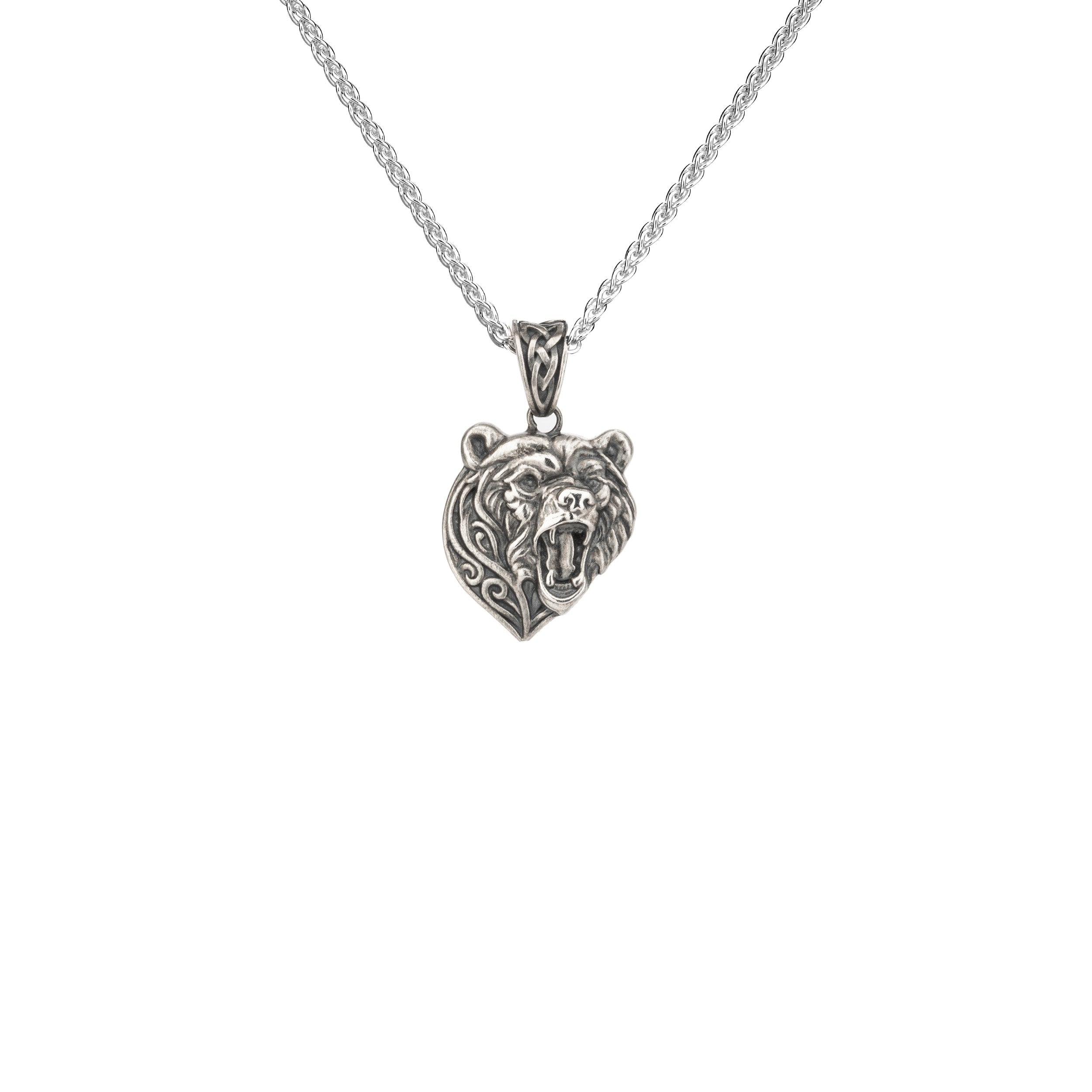 Oxidized Silver Bear Head Pendant