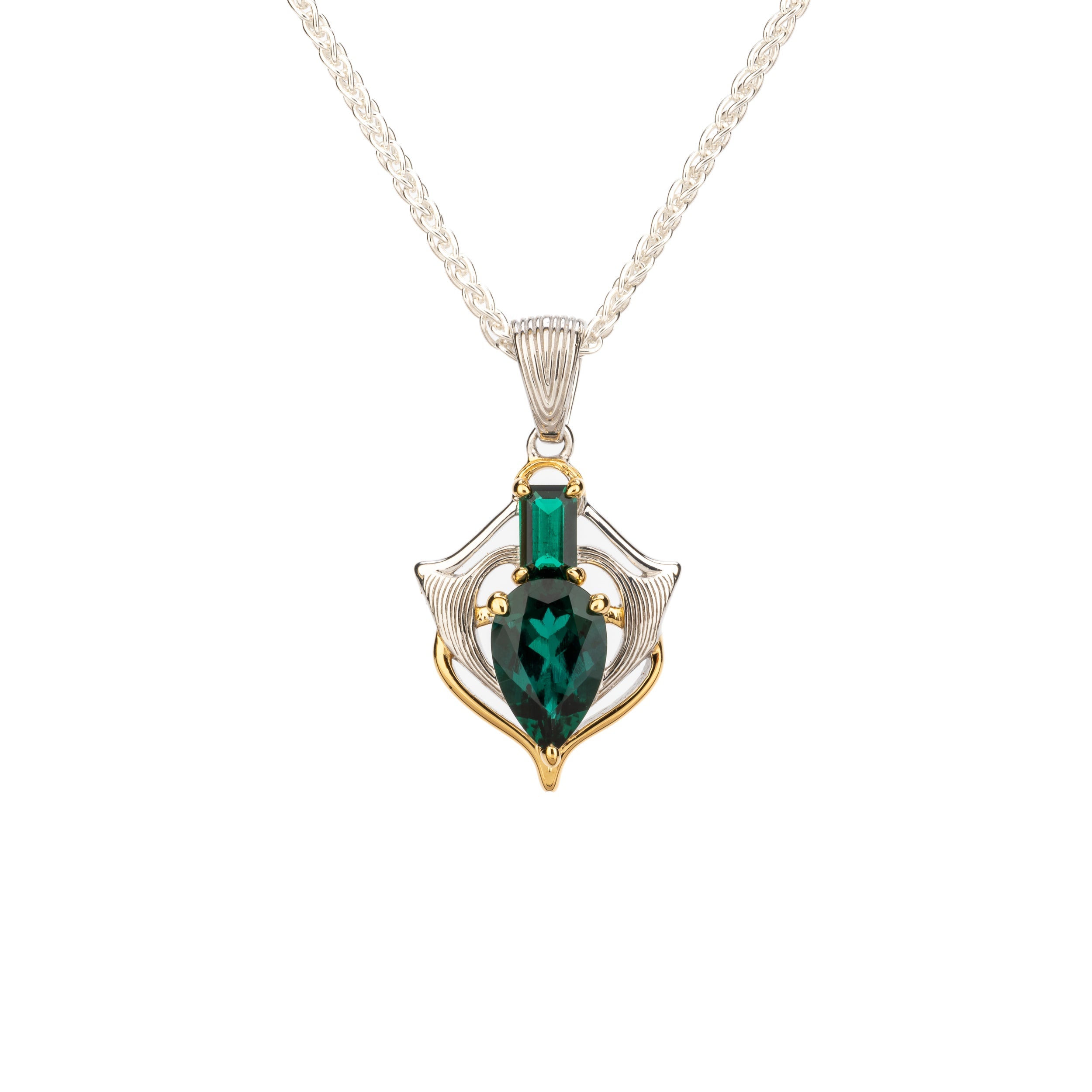 Silver and 18k Vermeil and Lab Grown Emerald Alchemy Thistle Pendant