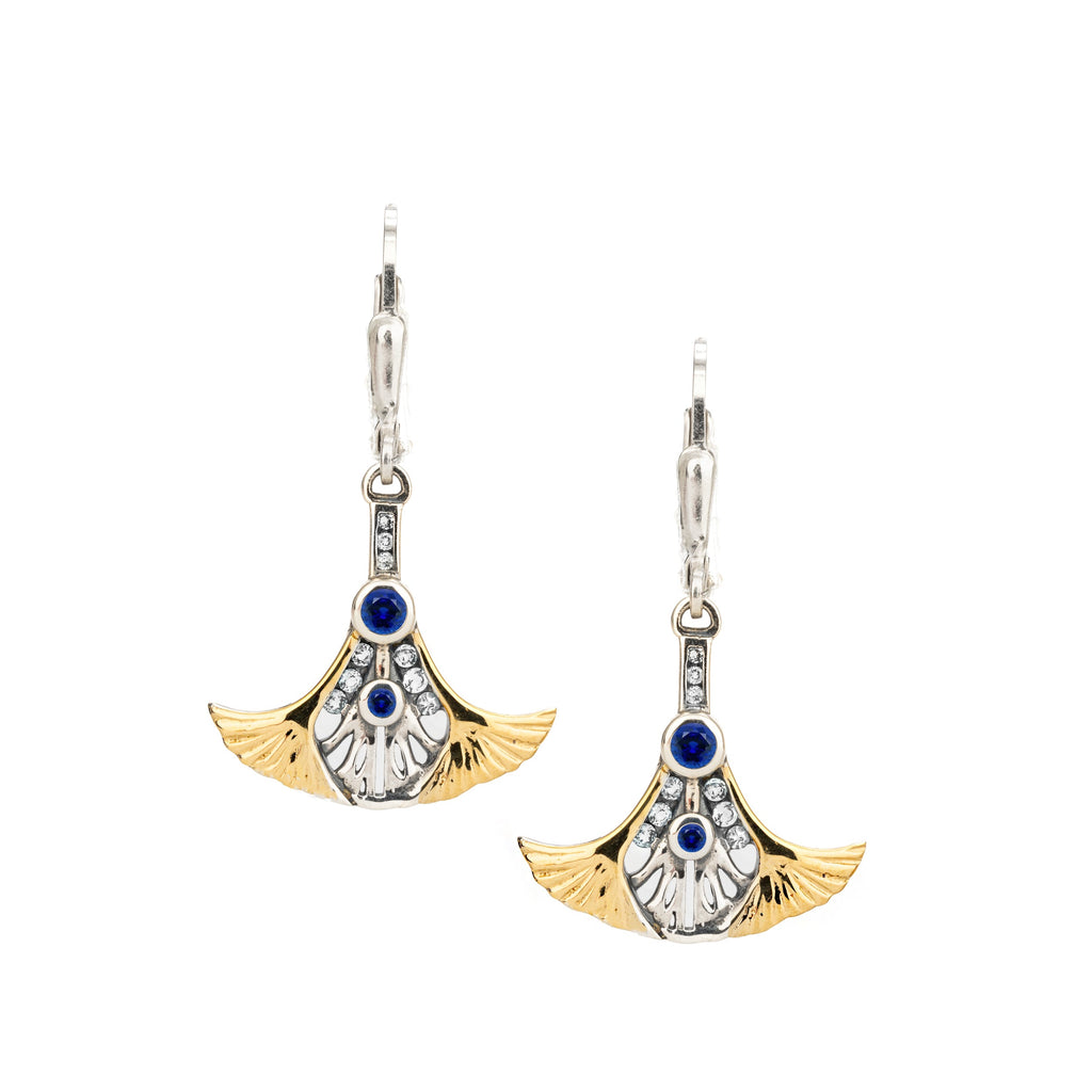 Silver with 24k Vermeil with Lab Grown Blue Sapphire or Ruby and White Moissanite Leverback Earrings
