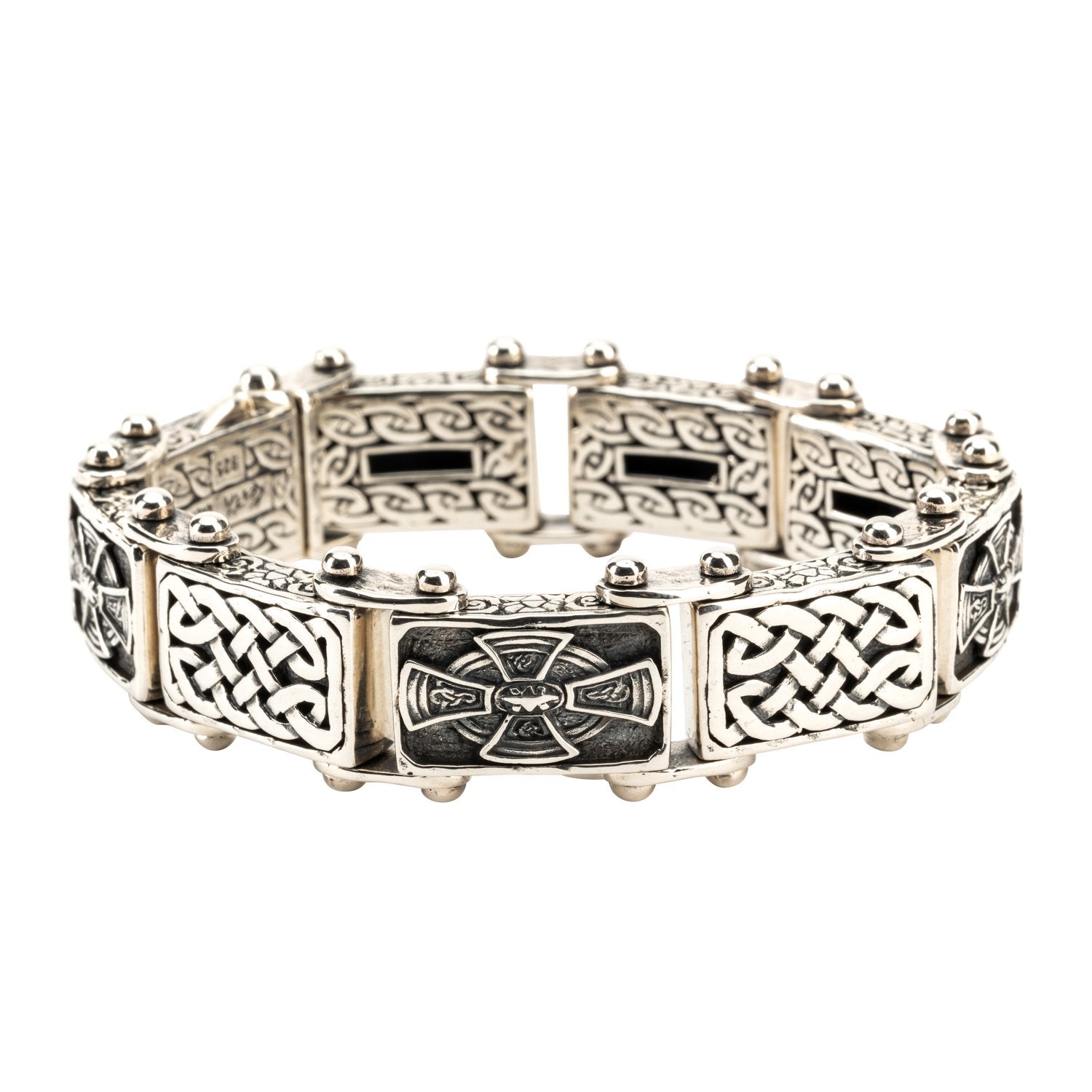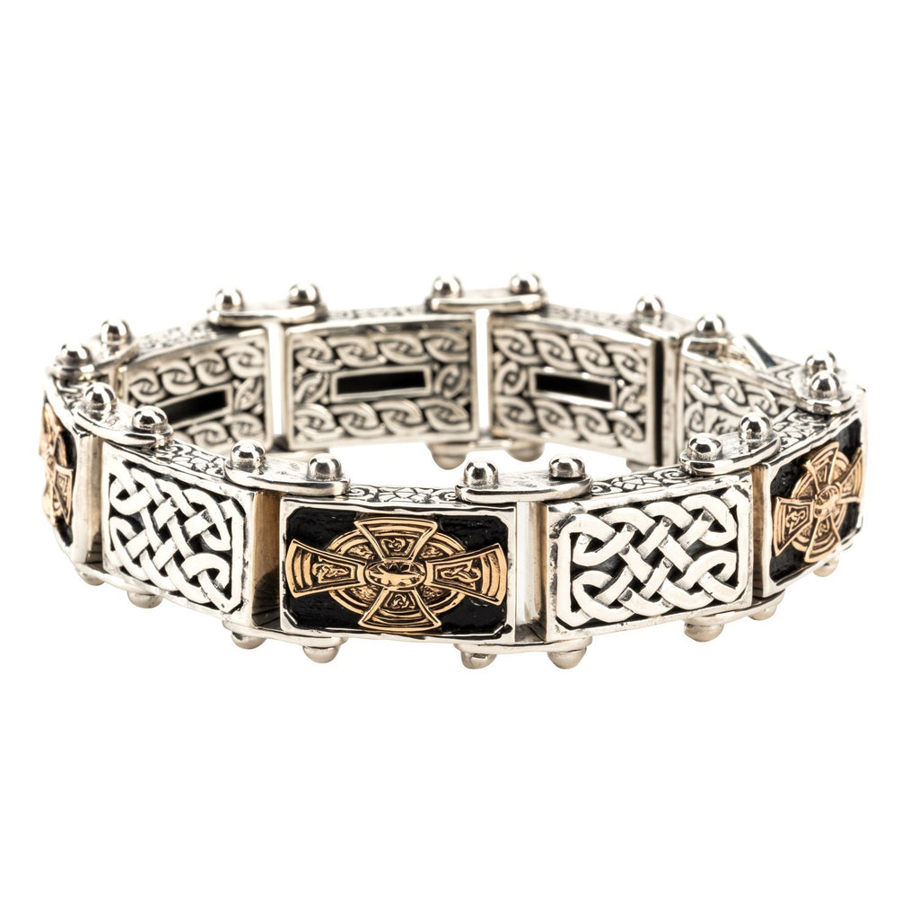 Silver or Silver and Bronze Celtic Cross Bracelet