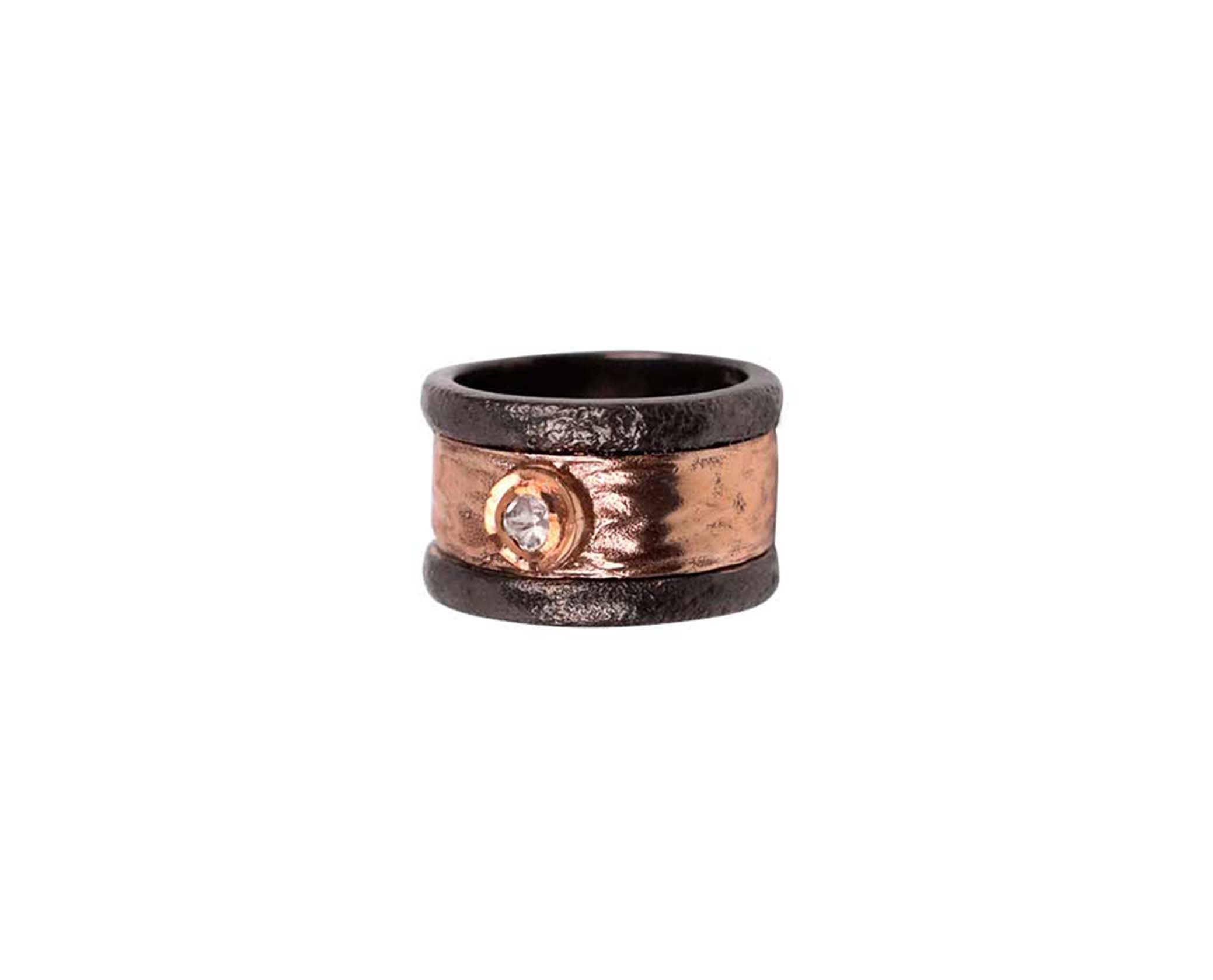 Silver and Black Rhodium and Bronze Raw Diamond Ring