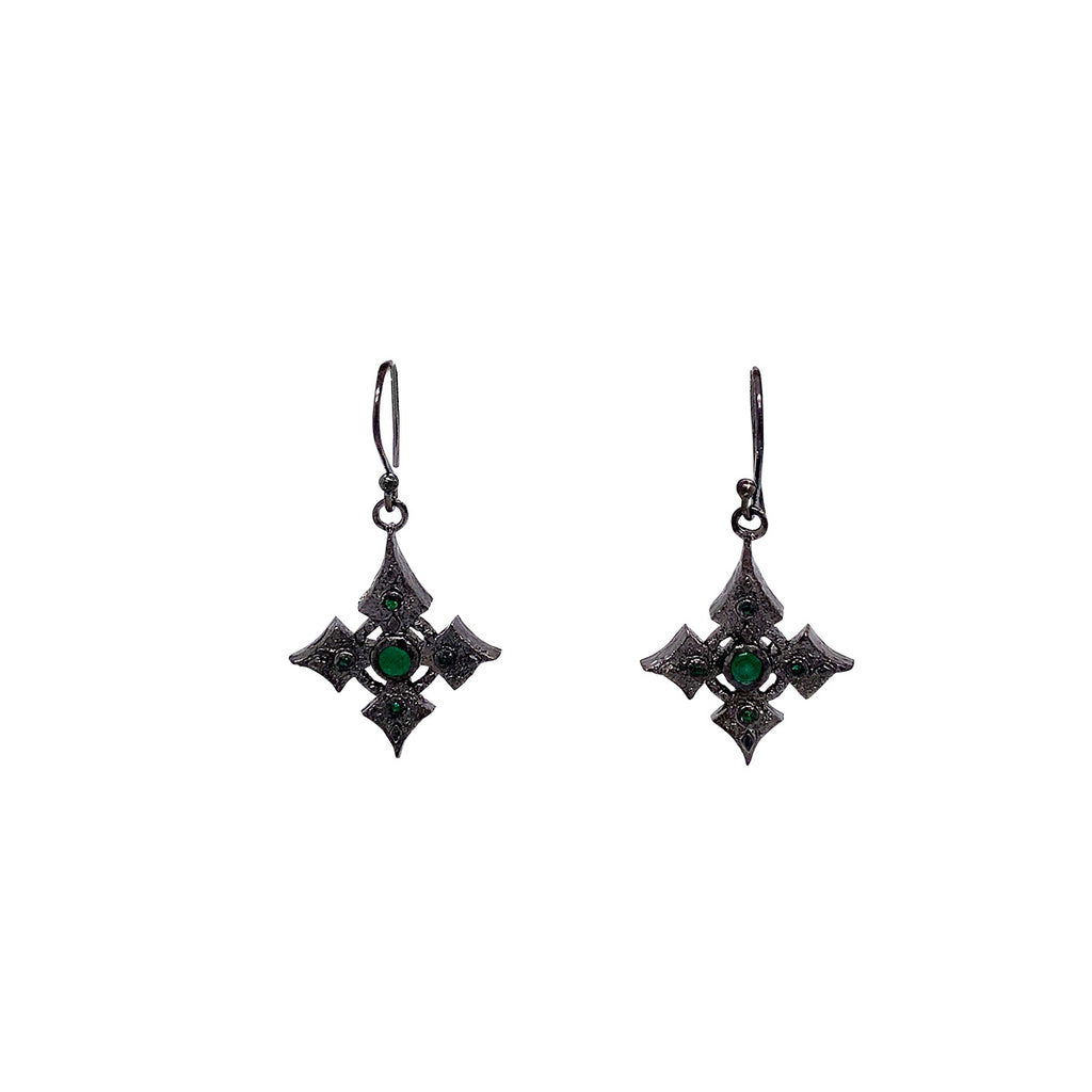 Raw Diamond Collection - Silver and Black Rhodium Cross Earrings - Emerald