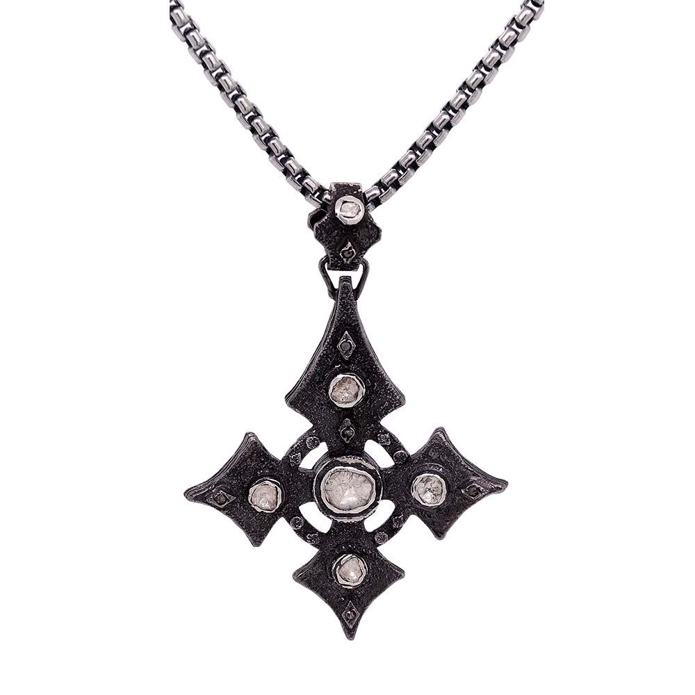 Materials: Silver and Black Rhodium and Raw Diamond 0.70ctw