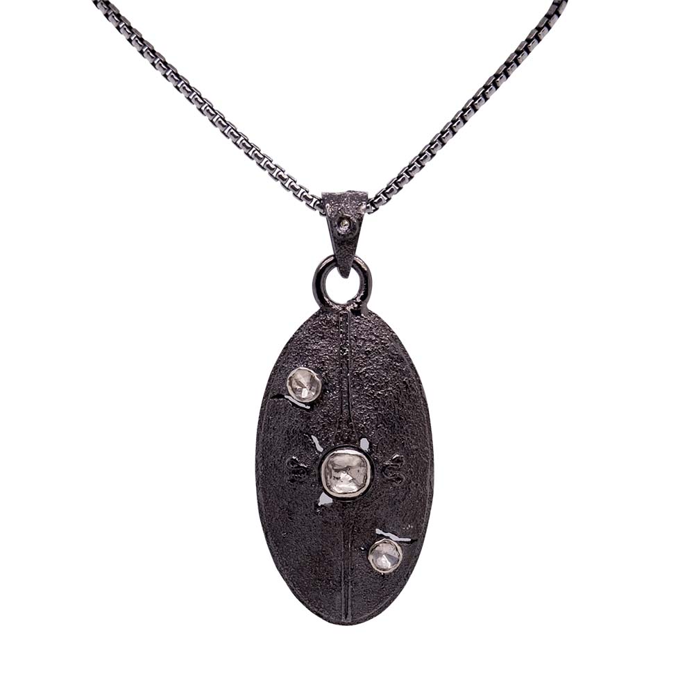Silver and Black Rhodium Raw Diamond Oval Shield Pendant