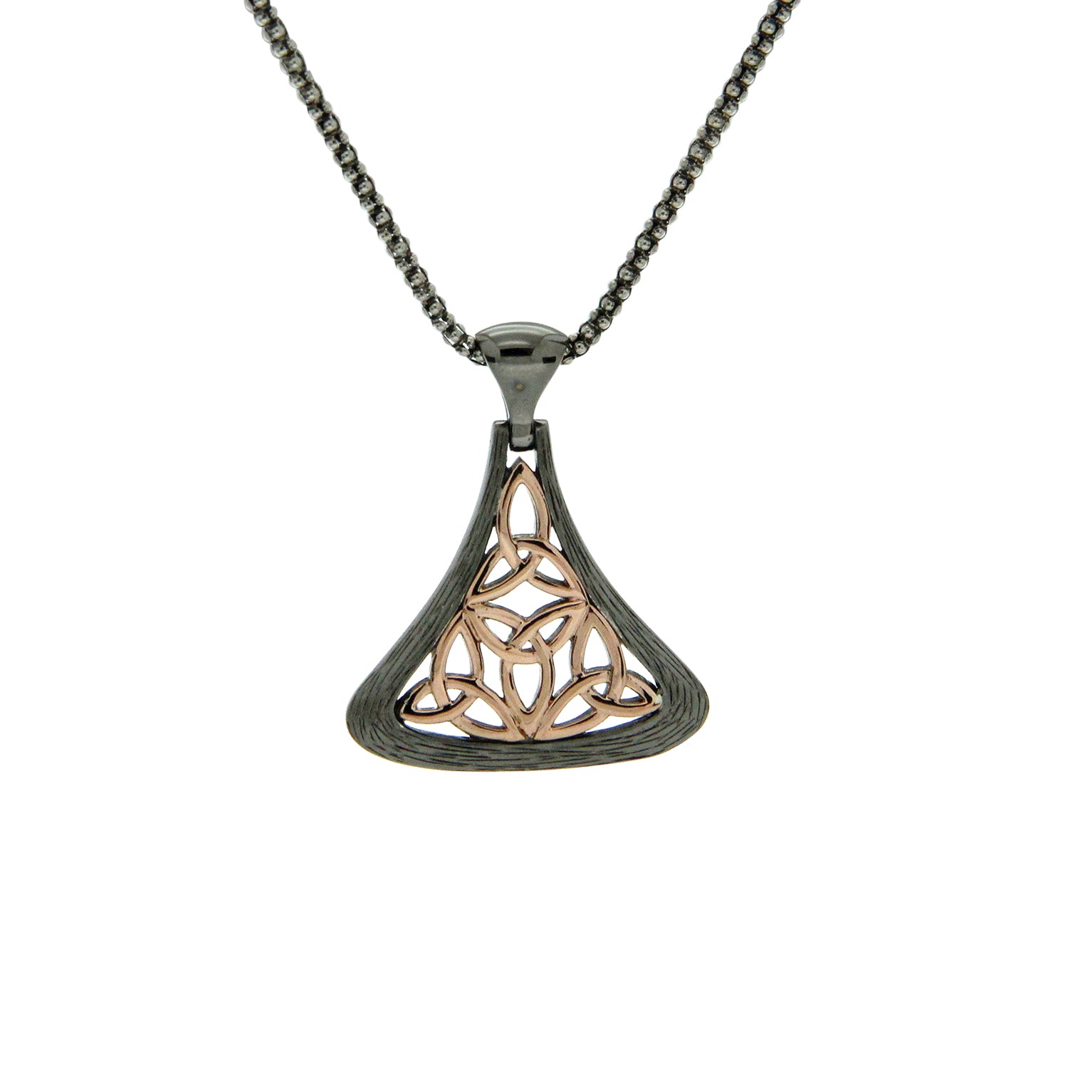 Darkened Silver and 10k Rose Gold Celtic Trinity Pendant
