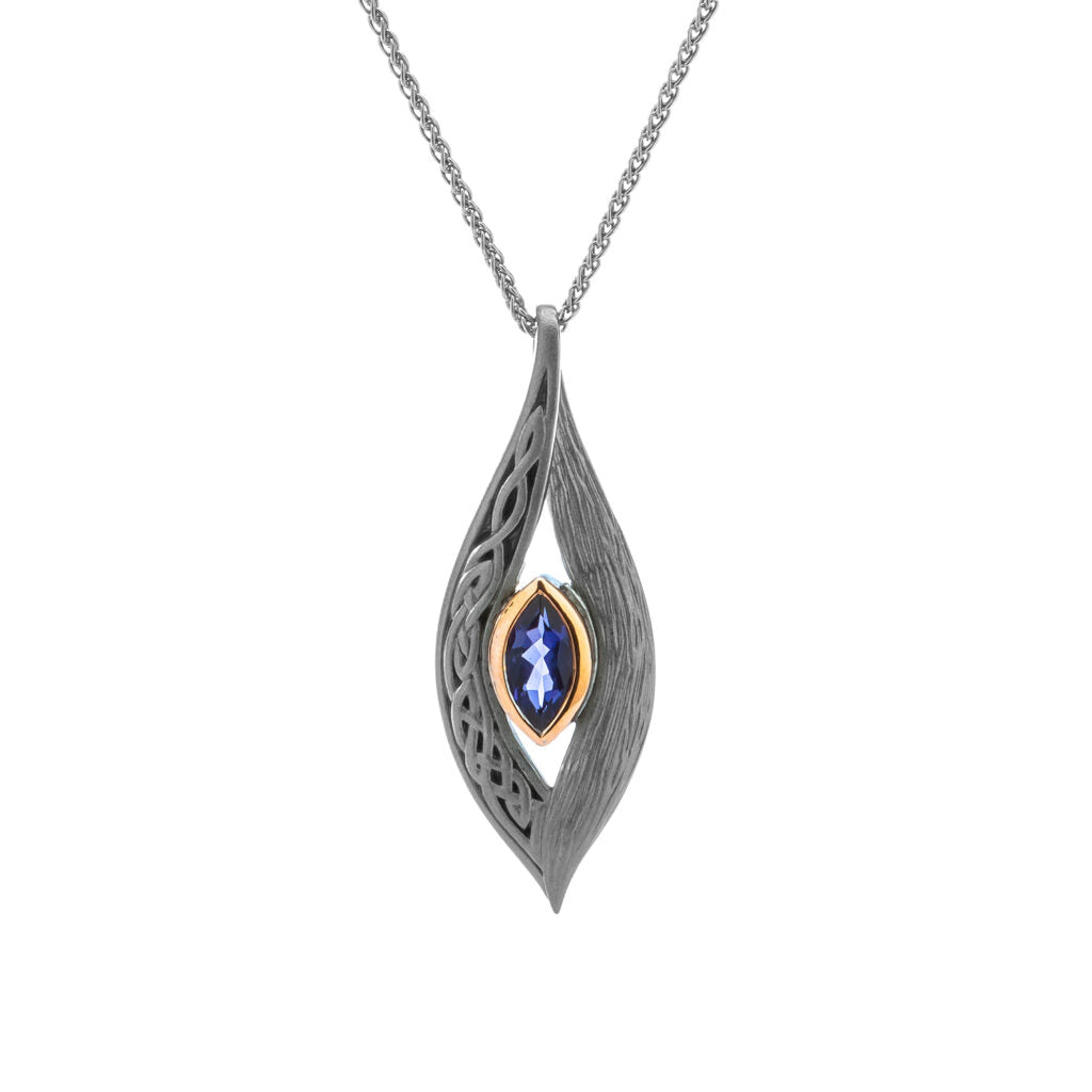 Materials: Sterling Silver with Ruthenium and 10k Rose Gold with Blue Topaz or Iolite