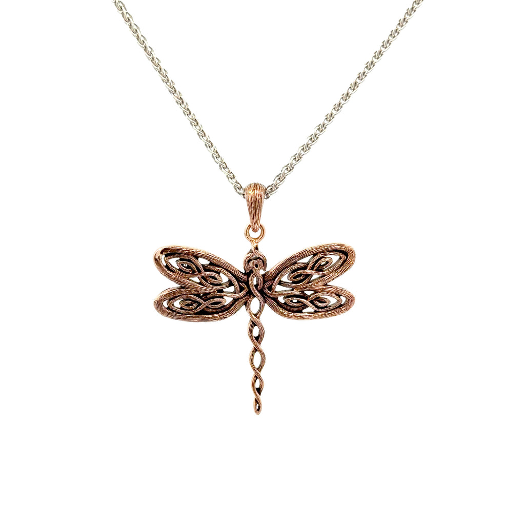 10k Yellow and White Gold Dragonfly in Reeds Pendant Small