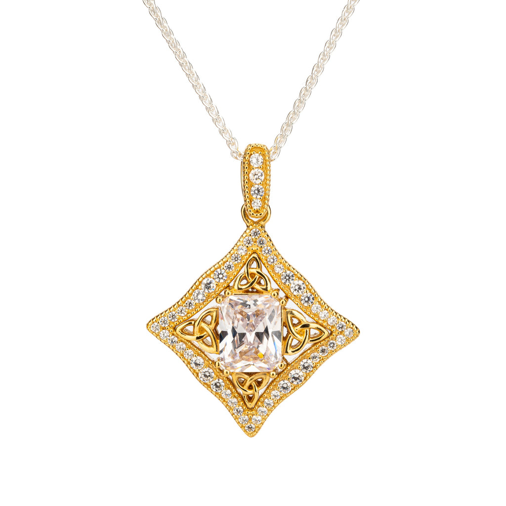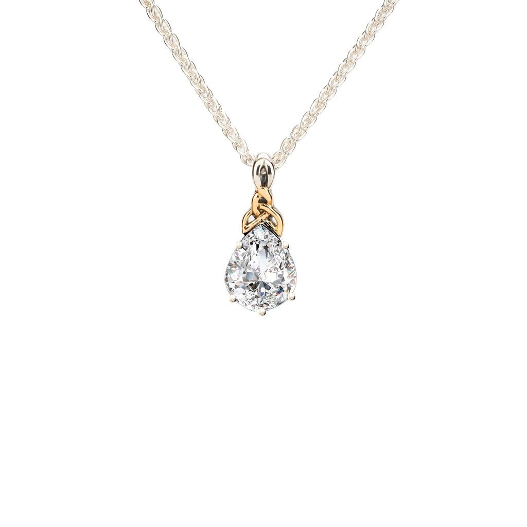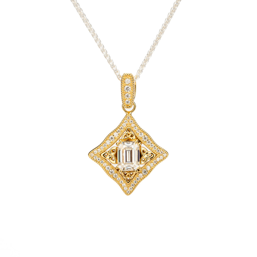 Silver and 18k Vermeil Alchemy Knot Pendant -Lab Grown Emerald or Moissanite