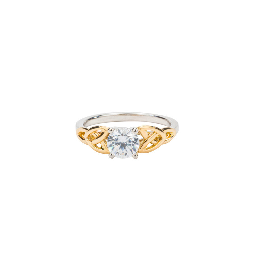 Materials: 14k White Gold Band with Yellow Gold Trinity with 1ct Moissanite