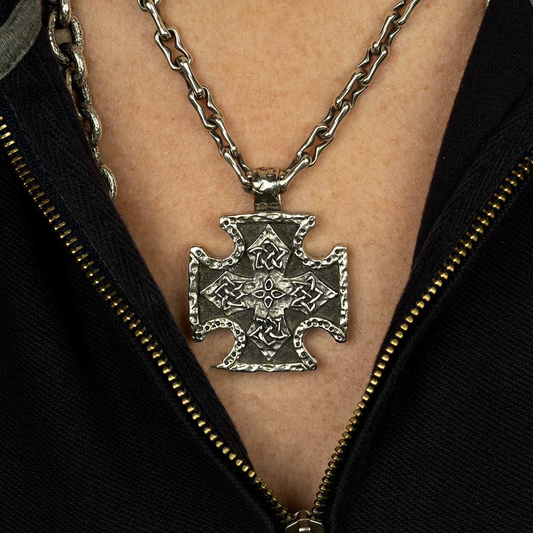 This pendant comes on an oxidized heavy Venetian style chain. To view our oxidized silver anchor link chain shown in our lifestyle photo click here.