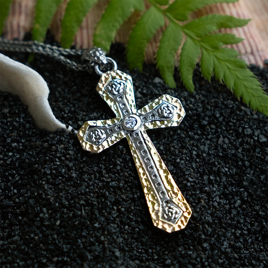 Materials: Sterling Silver Ruthenium + 10k Yellow Gold with Cubic Zirconia