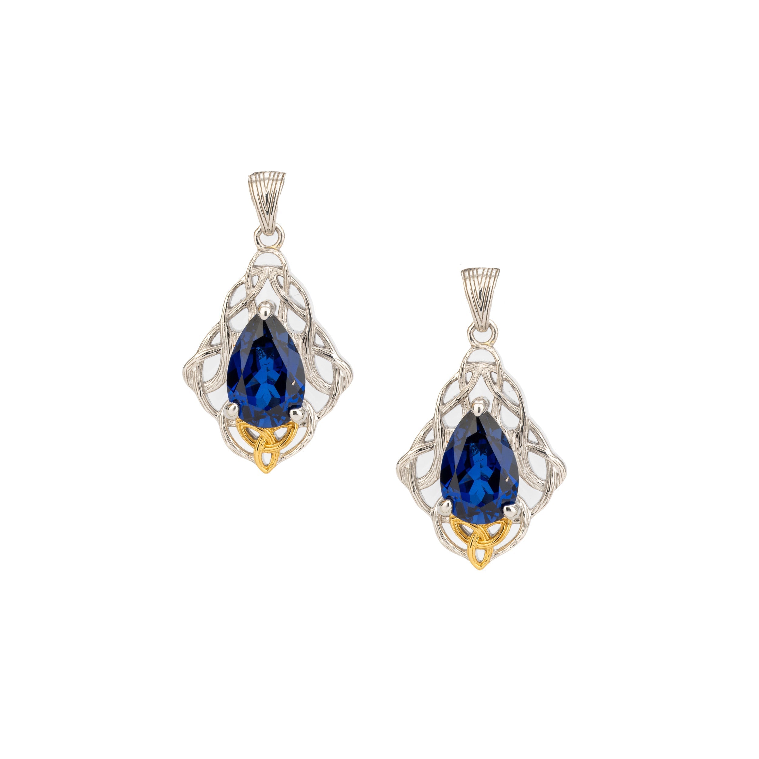 Materials: Sterling Silver, Rhodium and 18k Vermeil with Lab Grown Blue Sapphire (Pear Cut 9mm x 6mm)