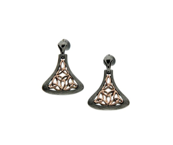 Darkened Silver and 10k Rose Gold Trinity Bell Stud Earrings