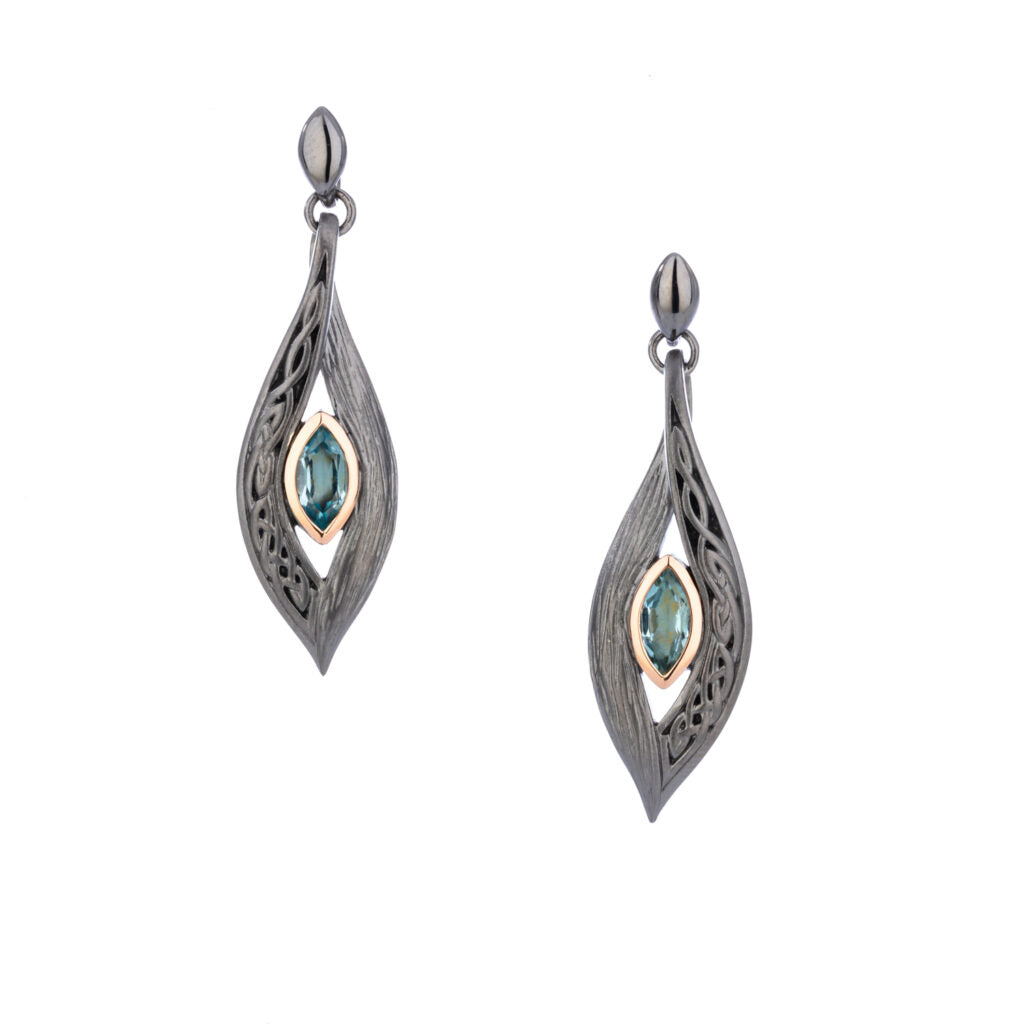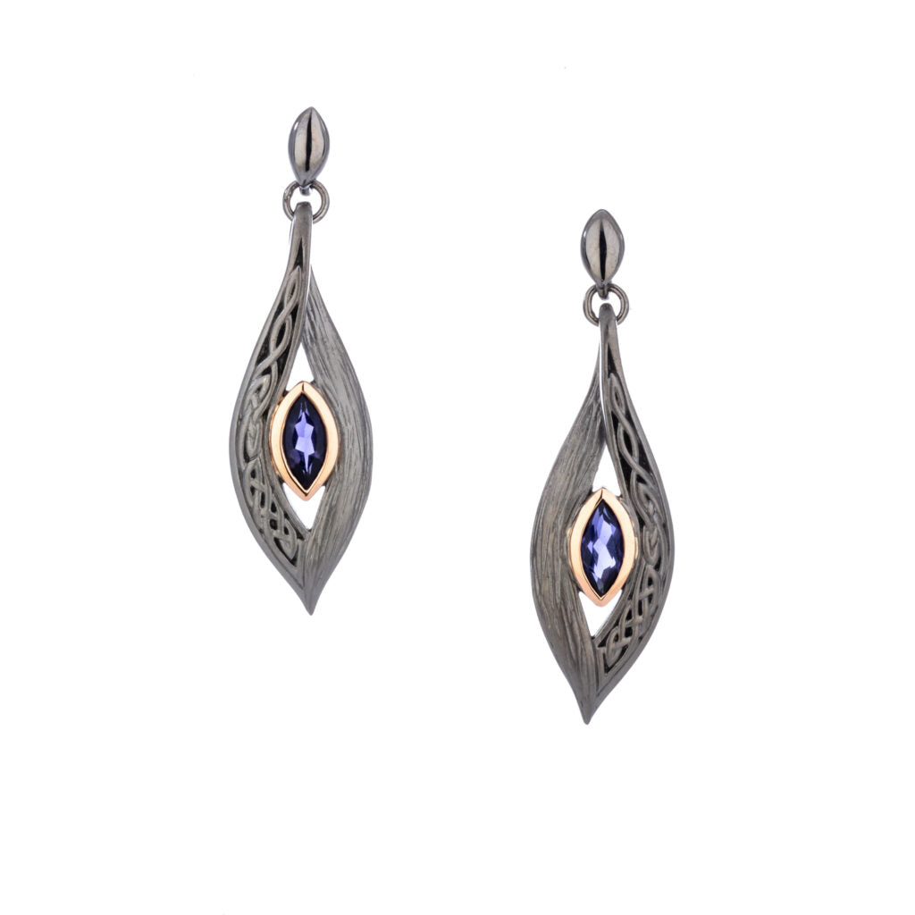 Materials: Sterling Silver with Ruthenium and 10k Rose Gold with Blue Topaz or Iolite