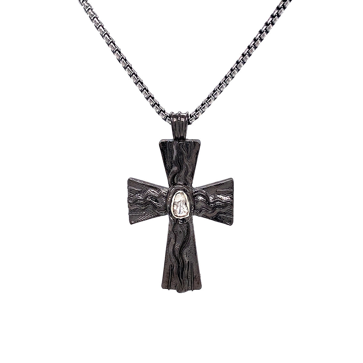 Materials: Sterling Silver + Black Rhodium with Raw Diamond 0.17ctw