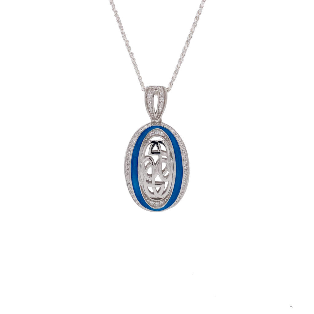 Materials: Sterling Silver, Blue Enamel, white Cubic Zirconia