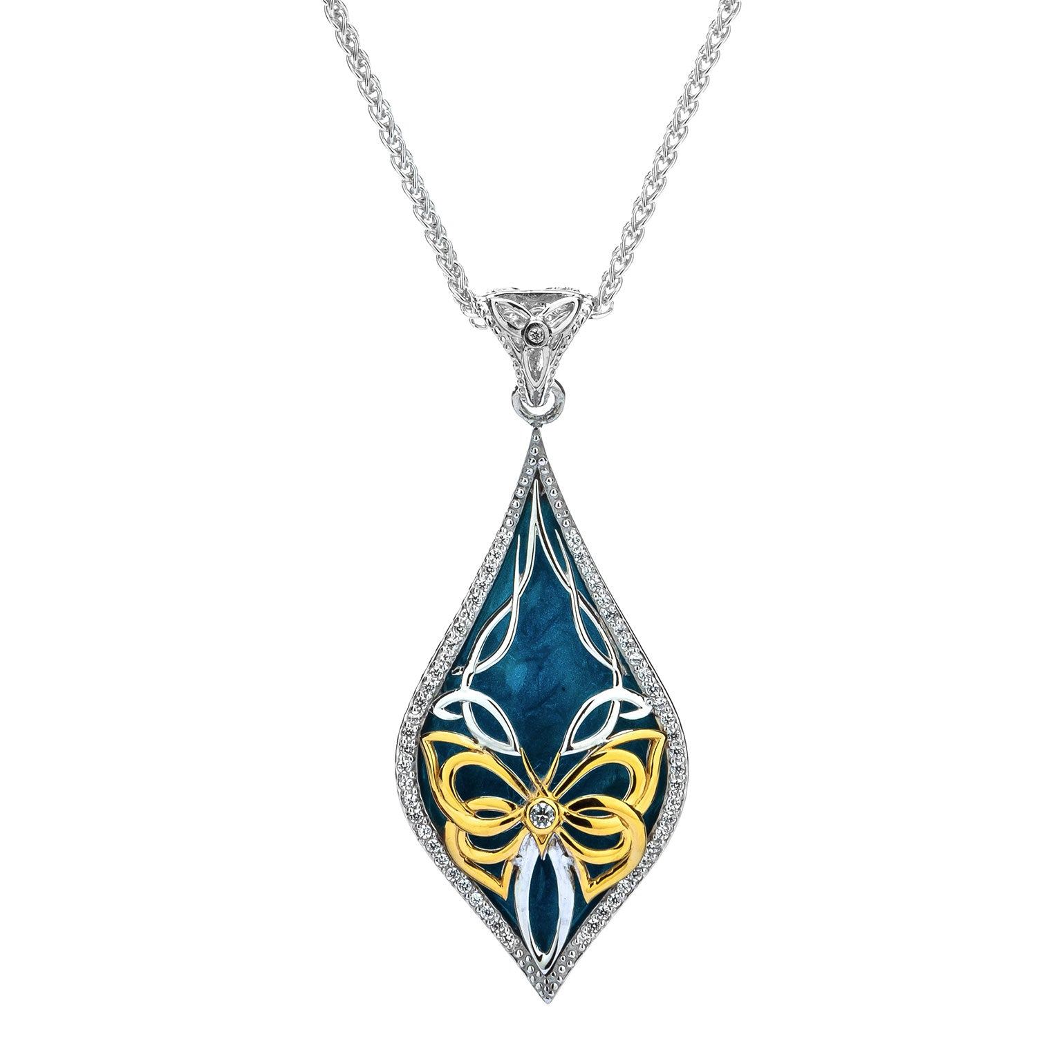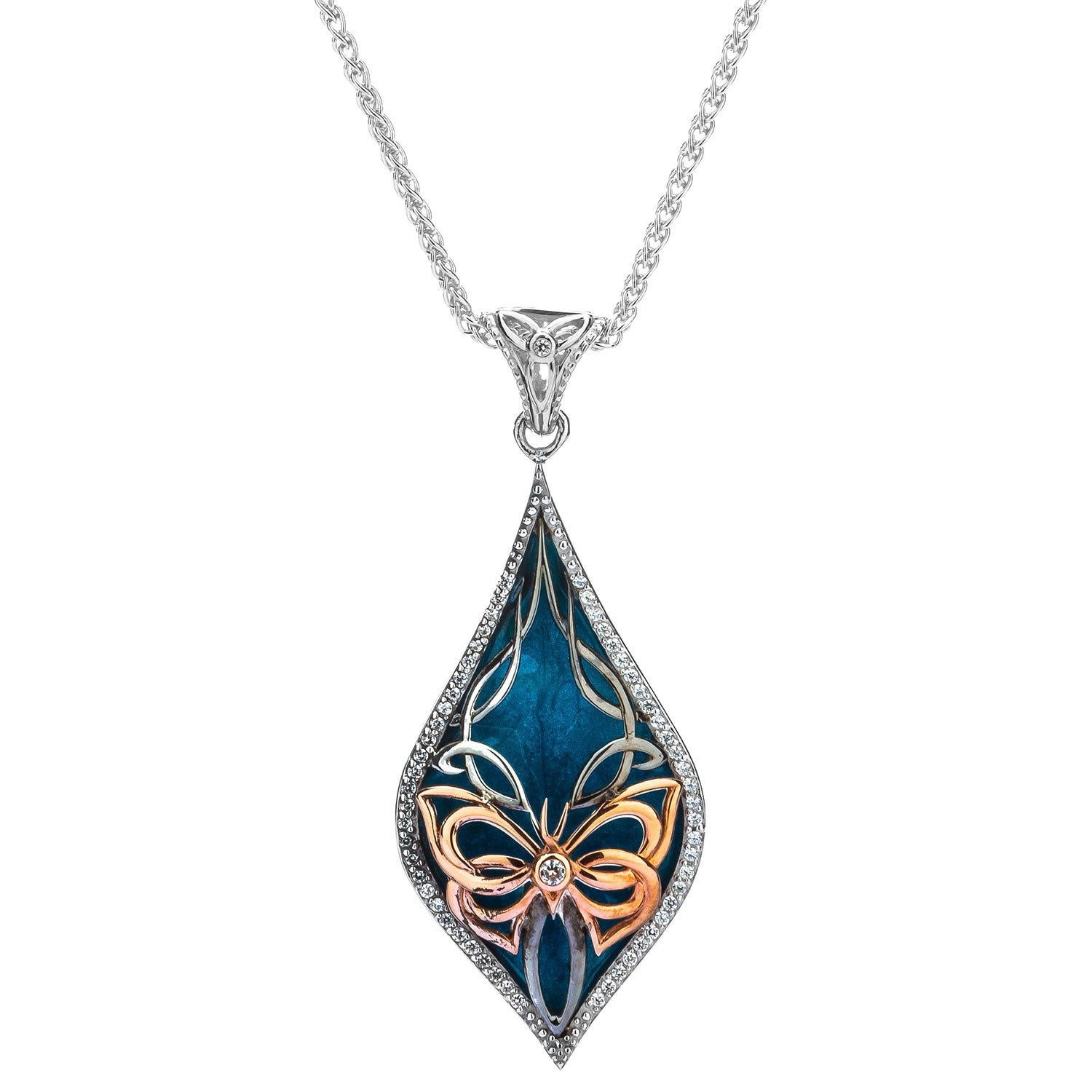 Materials: Sterling Silver / Rhodium + 10k Yellow or Rose Gold, Blue Enamel and White Cubic Zirconia