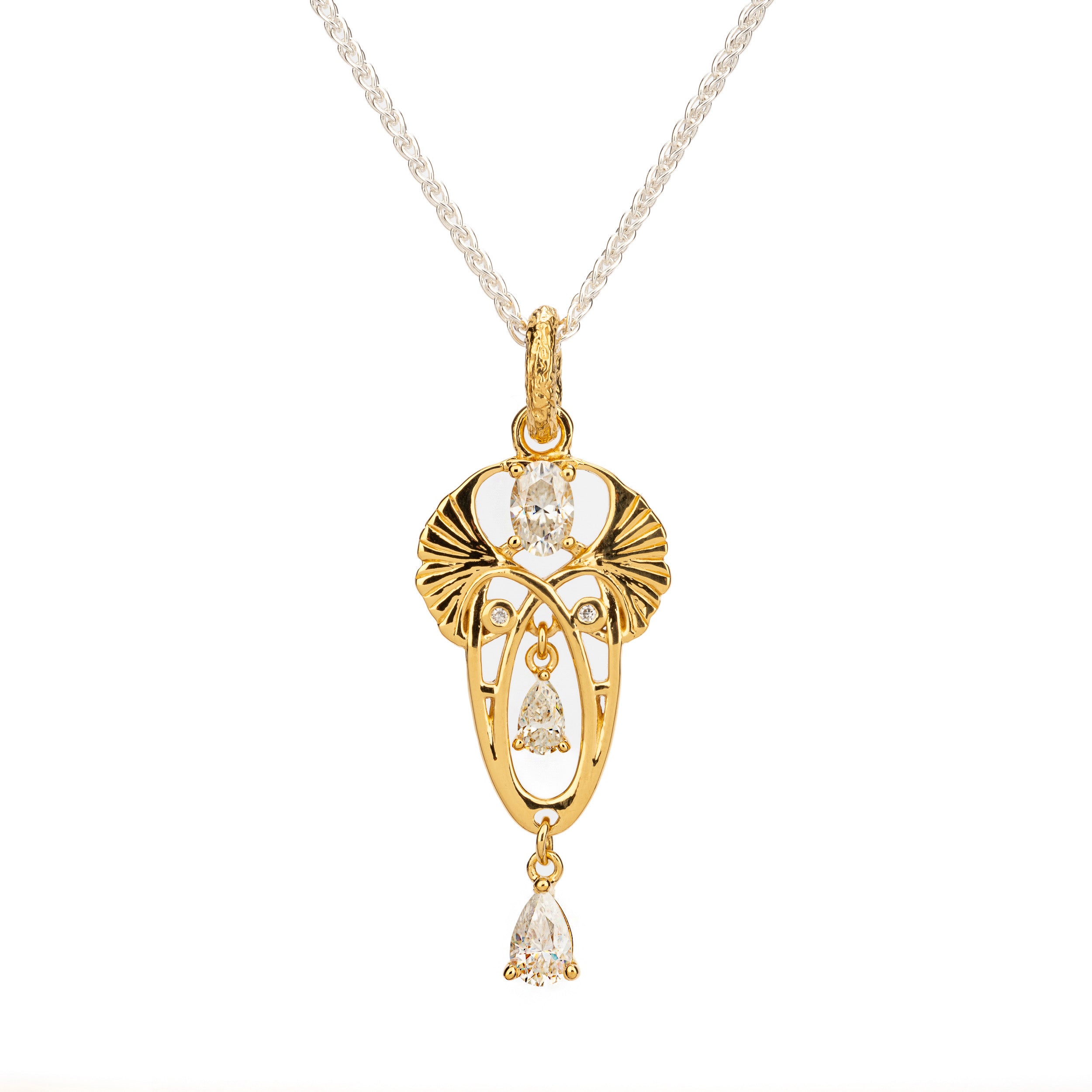Materials: 10k Gold with White Moissanites (Pear 4mm x 6mm, 3mm x5mm, Oval 4mm x 6mm, Round 1.3mm)