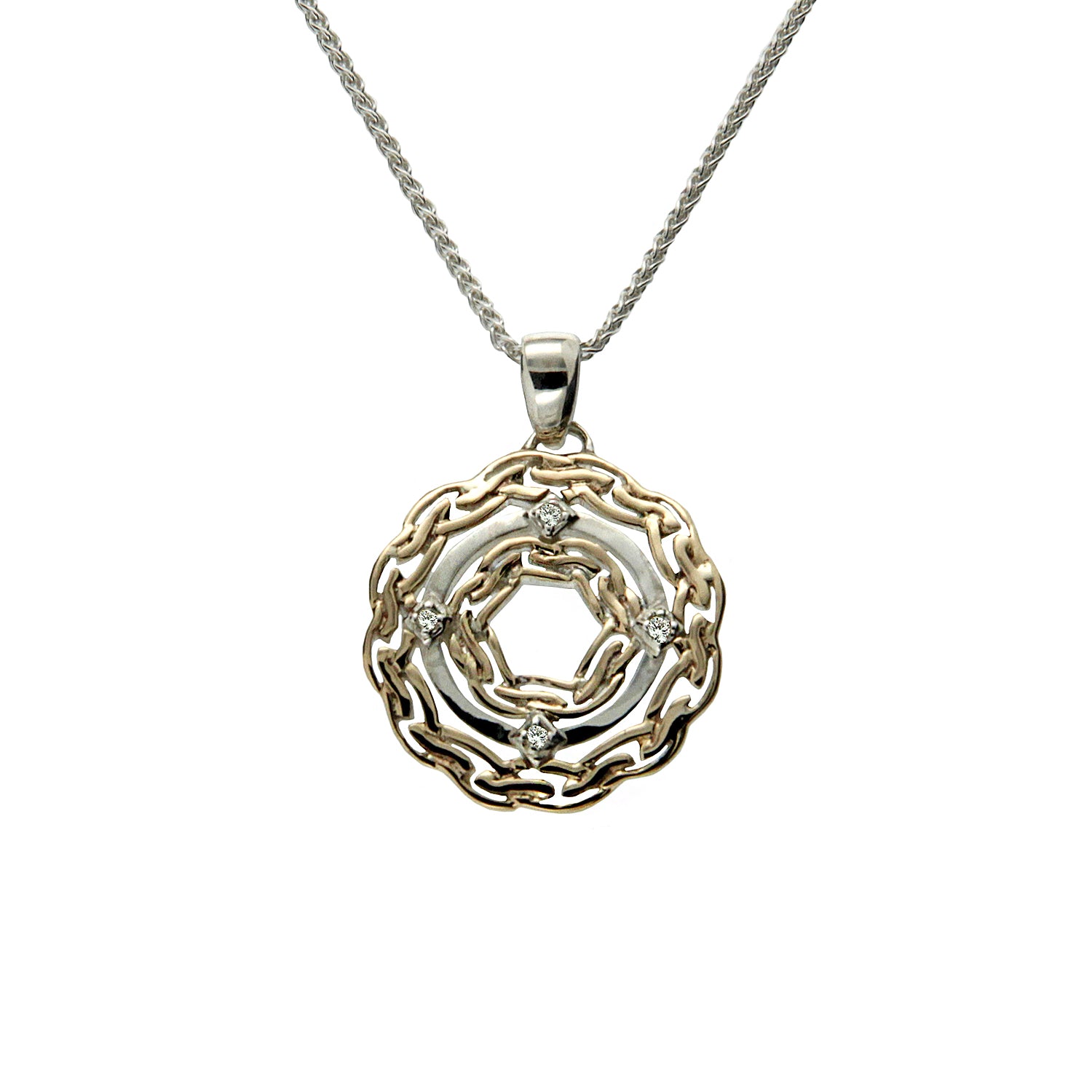 Silver and 10k Gold Wave Pendant - White Sapphire