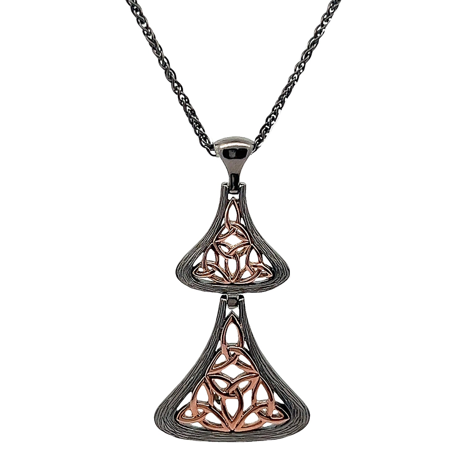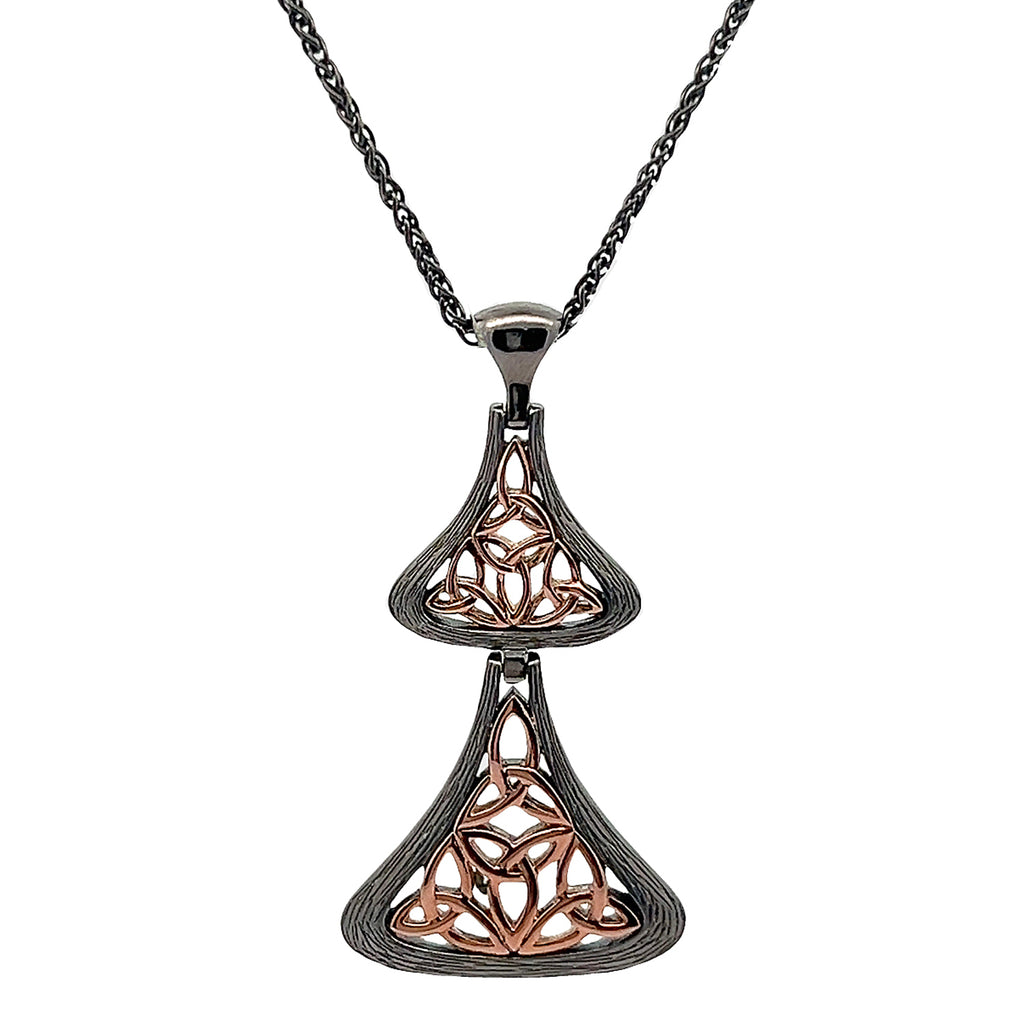 Darkened Silver and 10k Rose Gold Celtic Double Trinity Bell Pendant