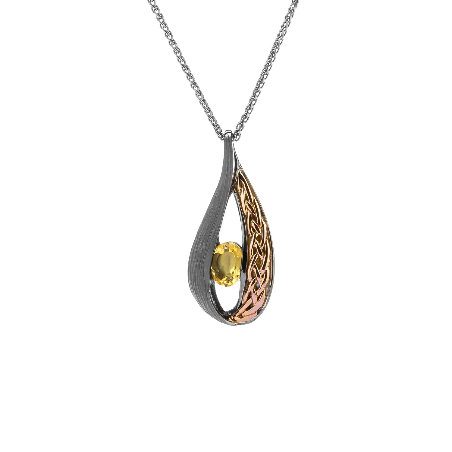 Silver and 10k Rose Gold Eternity Knot Elven Pendant - Citrine